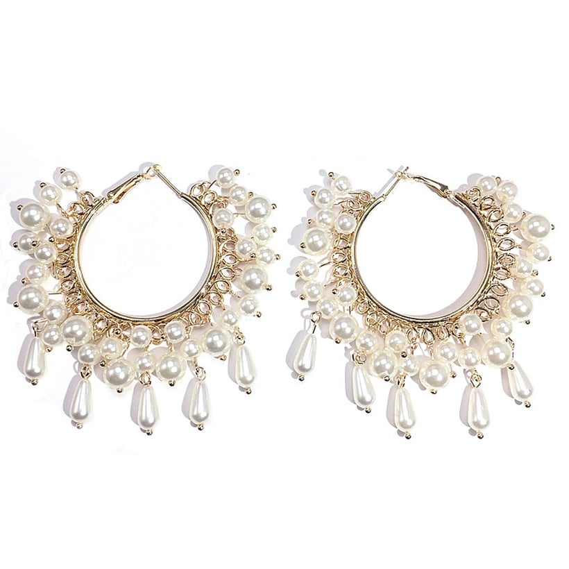 Pearl & Gold Tassel hoop earrings